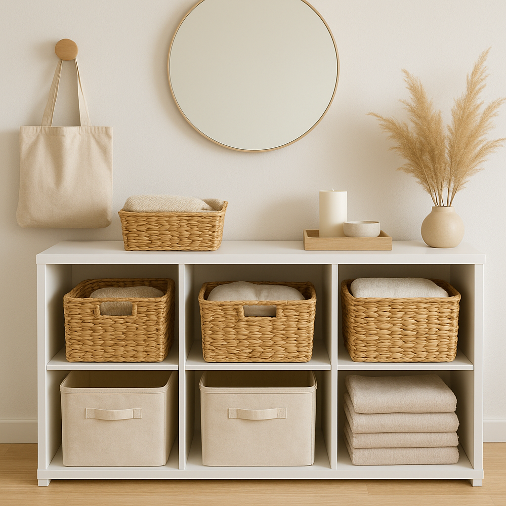 Используйте стильные контейнеры и корзины для хранения вещей. Это поможет поддерживать порядок и добавит эстетики.
